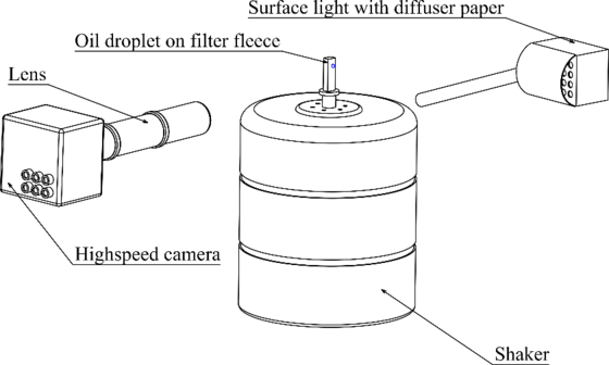 The oscillation of the droplet occurs in two ways. Using a shaker, the substrate and hence the droplet can be selectively excited. Adjustable parameters include frequency, amplitude, and acceleration, with excitation possible in both vertical and horizontal directions. Additionally, disruptors can be integrated into the filter. When fluid flows around the filter, these disruptors create separation vortices that excite the droplet. These vortices depend on the disruptor and the flow velocity and can vary within the filter.